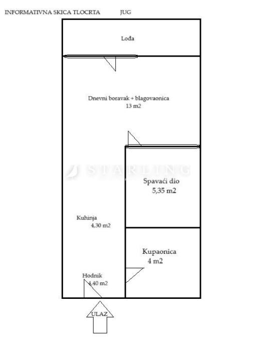 Stambena površina iznosi 37 m2, sastoji se od dnevnog boravka s blagovaonicom, kuhinje, spavaće sobe, kupaonice, ulaznog dijela i loggie. Uz stan se prodaje i GPM od 15 m2.