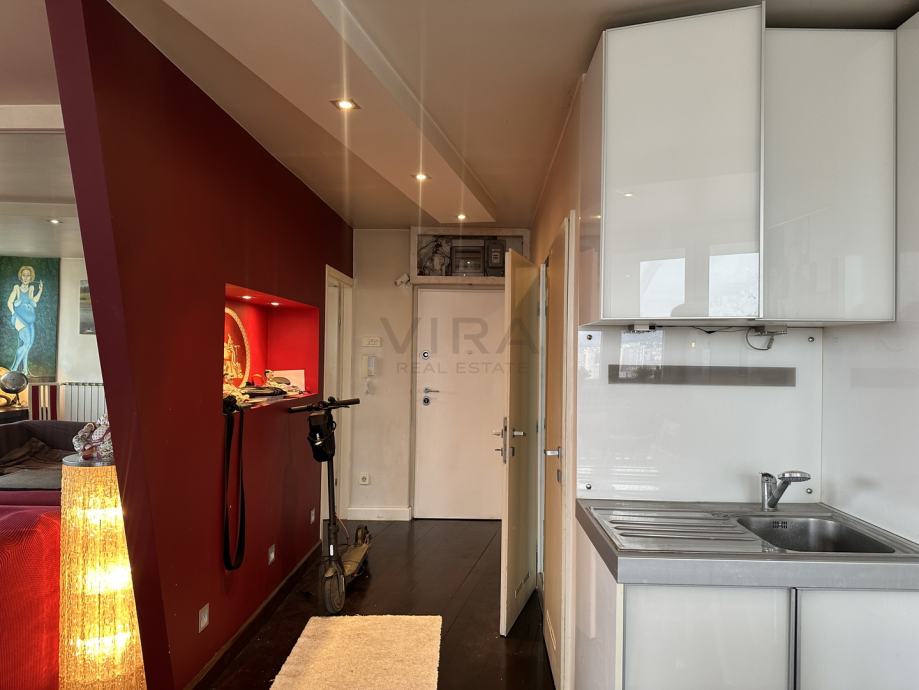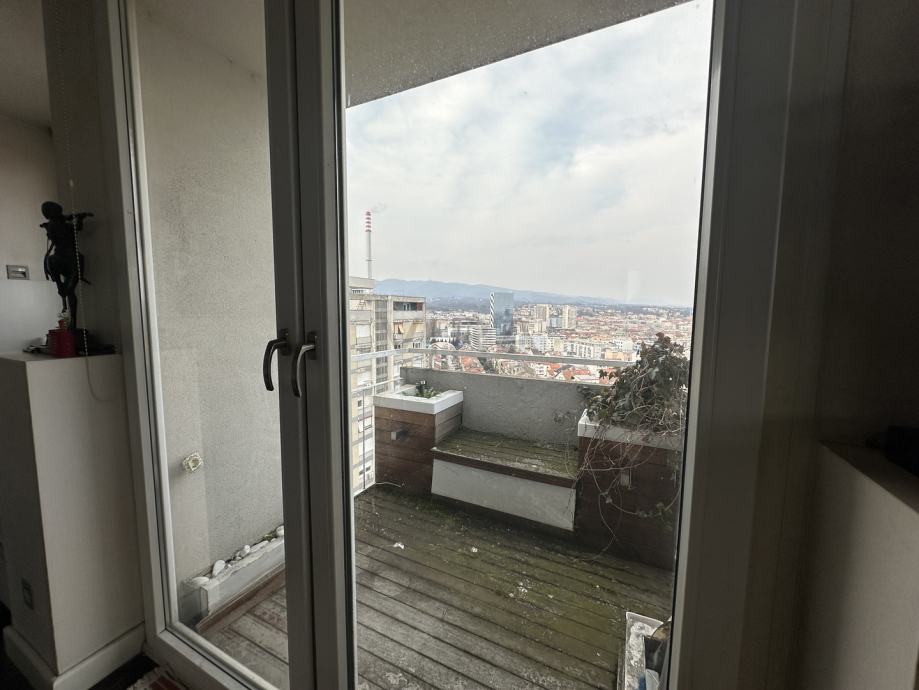 Prodaje se dvosoban stan površine 57 m2 na sedamnaestom katu zgrade s liftom.
