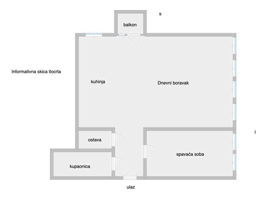 Stan se sastoji od dnevnog boravka, kuhinje, blagovaonice, spavaće sobe, hodnika, kupaonice, wc - a i balkona.