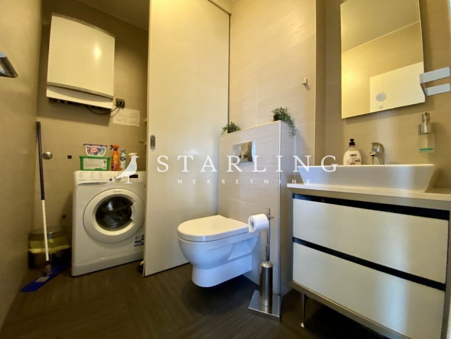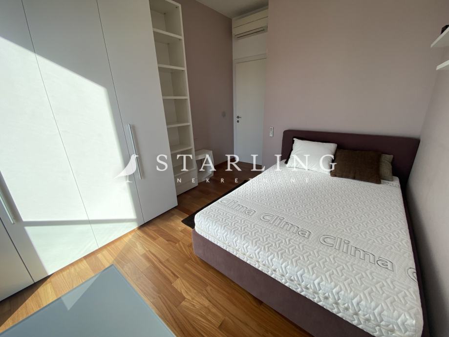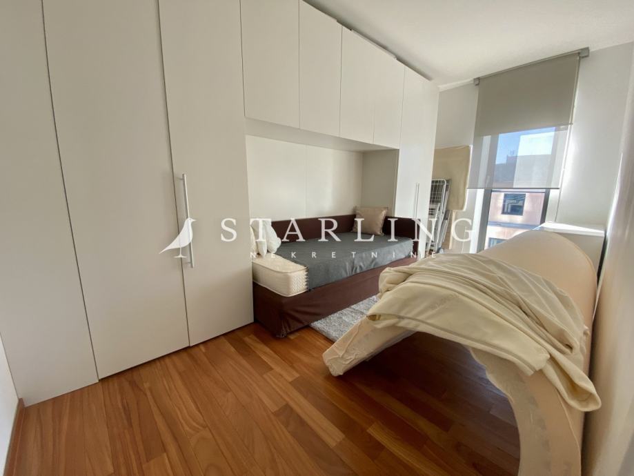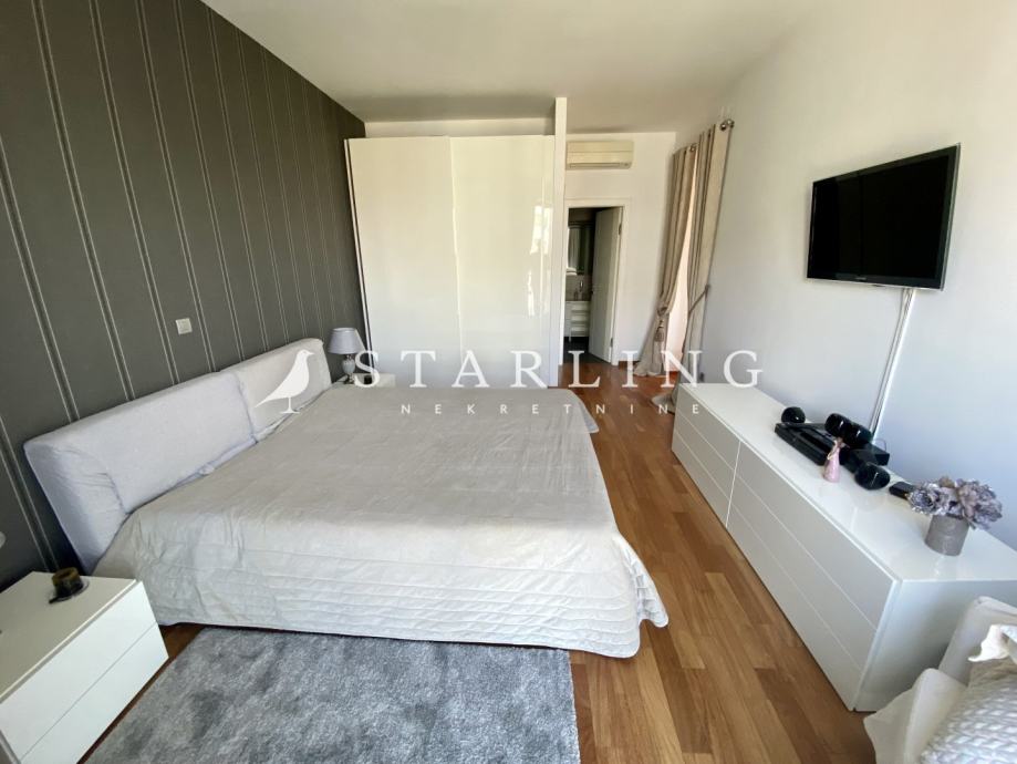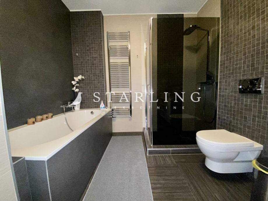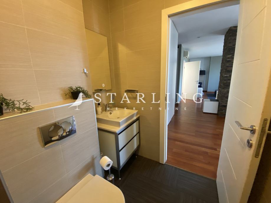Ulaz u stan se nalazi na petom katu koji se sastoji od dnevnog boravka, kuhinje, blagovaonice, gostinjske sobe, wc, hodnika i terase. Na drugoj etaži nalazi se master spavaća soba s vlastitom kupaonicom i garderobom, dvije spavaće sobe, walk-in ormar, kupaonica, terasa i hodnik.