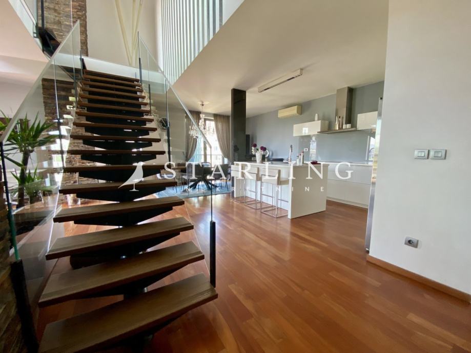 Prodaje se dvoetažni peterosoban stan površine 190 m2 na petom i šestom katu zgrade s liftom.