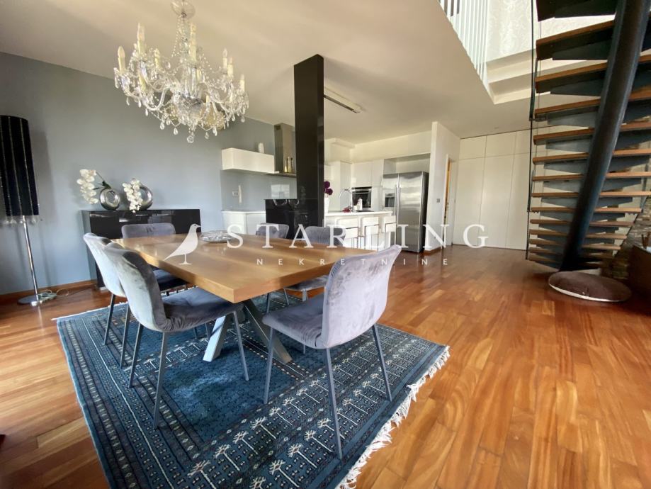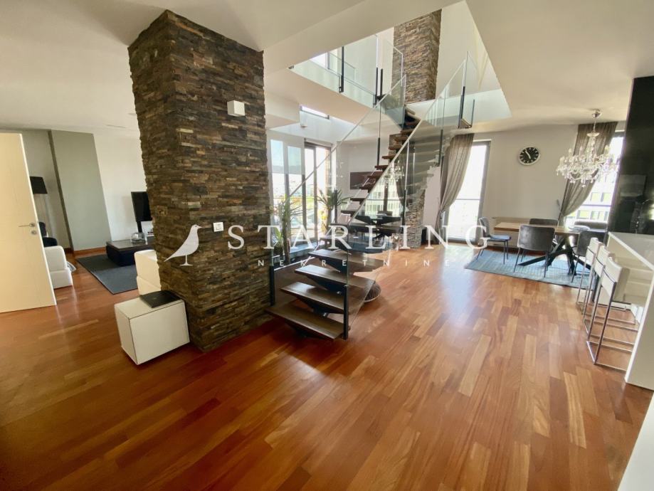 Prodaje se dvoetažni peterosoban stan površine 190 m2 na petom i šestom katu zgrade s liftom.