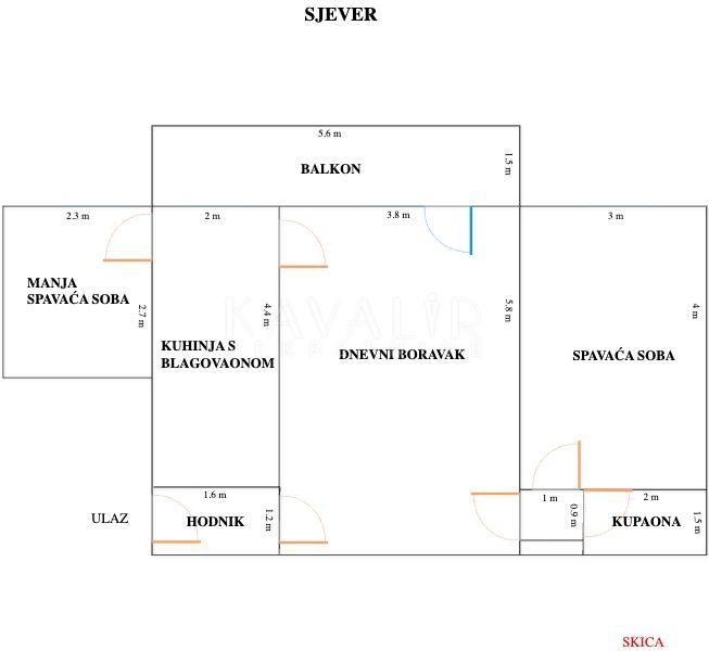 Postoji mogućnost prenamjene u 3.5-soban stan ili dobivanja open space koncepta dnevnog boravka s kuhinjom i blagovaonicom.