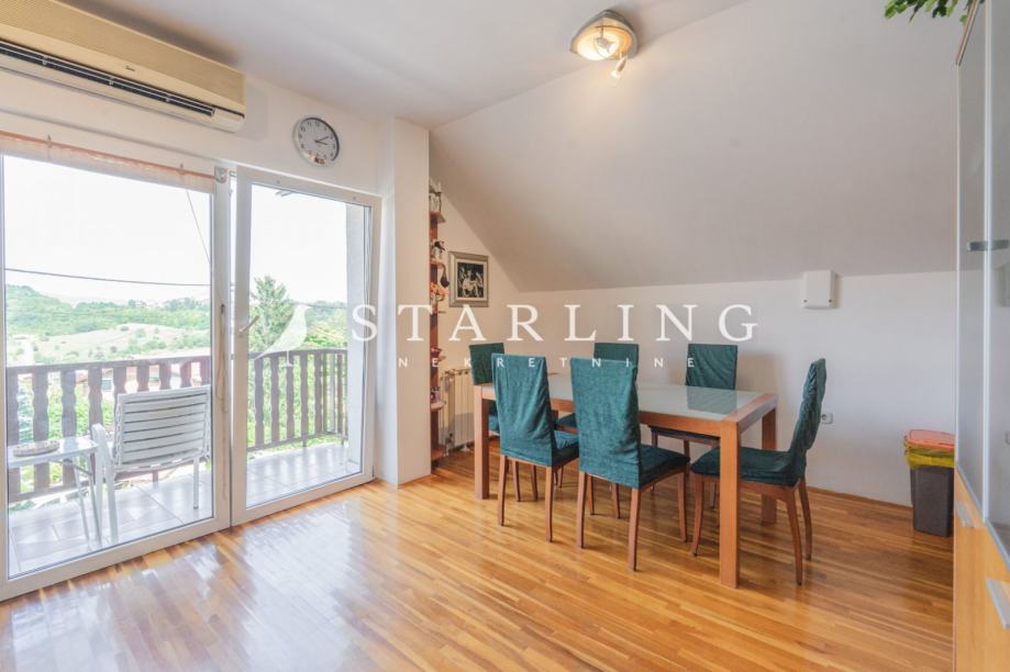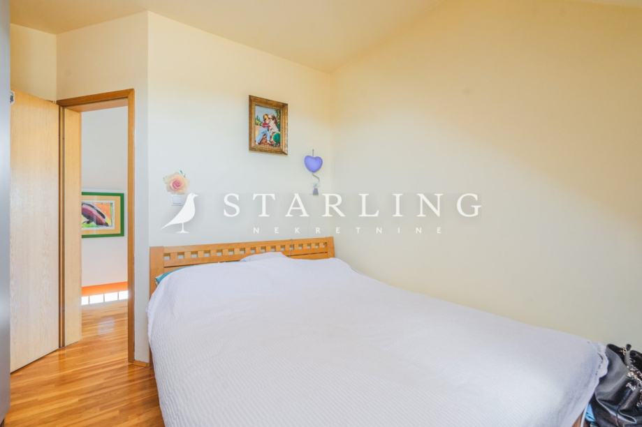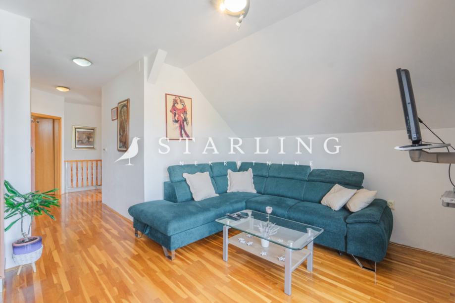 Gornja etaža se sastoji od dnevnog boravka s blagovaonicom i kuhinjom, spavaće sobe, kupaonice, hodnika i natkrivenog balkona. Površina etaže iznosi 47 m2, a balkon od 9 m2 ne ulazi u ukupnu površinu. Stanu također pripadaju dva vanjska parkirna mjesta.