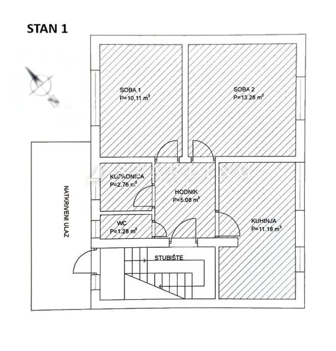 Stan se u naravi koristi kao dvoetažni stan ali u vlasničkim papirima svaka etaža je zasebna jedinica/stan.