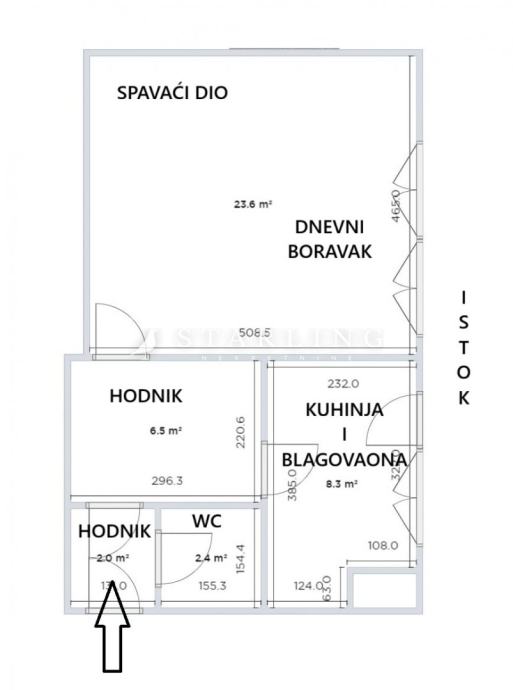 Stan se sastoji od dnevnog boravka, kuhinje s blagovaonicom, kupaonice s WC-om i hodnika, a prodaje se kompletno namješten.
