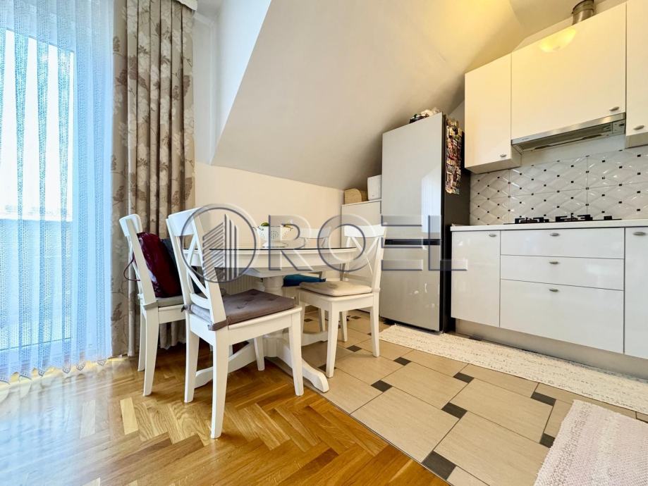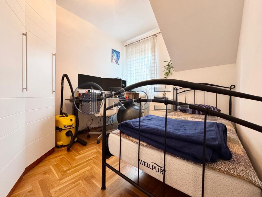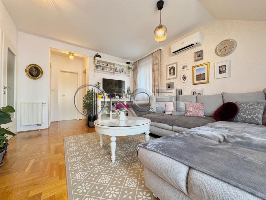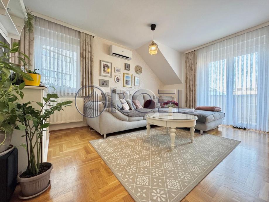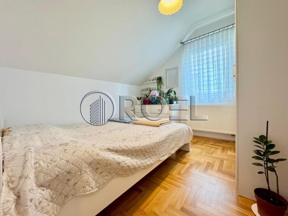 Trosobni stan veličijne 57 m2 s balkonom na mirnoj lokaciji, u povučenoj ulici u Savskom Gaju. Stan se nalazi na u zgradi sa ukupno pet stanova, na 2. katu. Površina stana iznimno dobro planirana i iskorištena.Stan se sastoji se od: dnevnog boravaka, dvije spavaće sobe, kuhinje, hodnika,kupaonice, balkona, tavan od 29m2, parkirno mjesto br. 6. predvorje zgrade, spremište za bicikle.