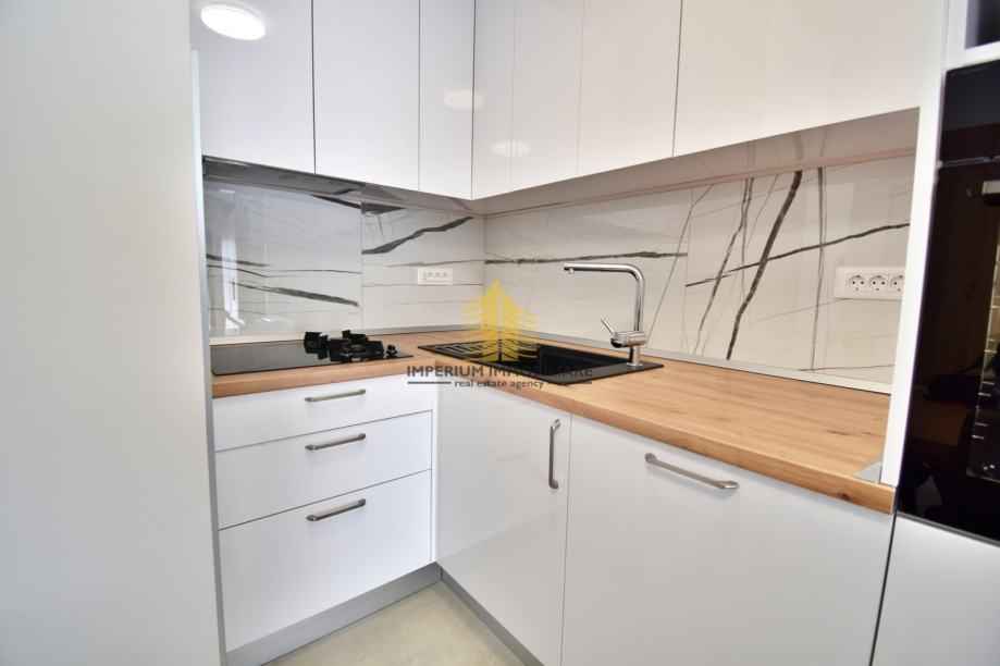 Stan se sastoji od prostranog dnevnog boravka u open-space konceptu s kuhinjom i blagovaonicom, dvije spavaće sobe, kupaonice s WC-om i terase koja pruža dodatni prostor za odmor. Pristup stanu olakšan je dizalom, što dodatno doprinosi udobnosti svakodnevnog života. Posebna prednost ove nekretnine je garaža, koja osigurava sigurno i praktično parkiranje vozila.