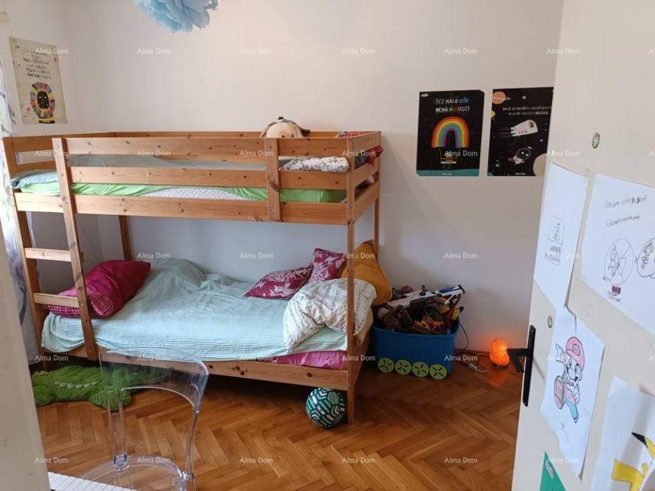 Prodaje se stan, 83 m2, Pula. Stan se nalazi na 4.katu i sastoji se od tri spavaće sobe, dnevnog punim sunca, dva wc-a (jedan s kupaonom), kuhinje i blagovaonom, balkona i terase.