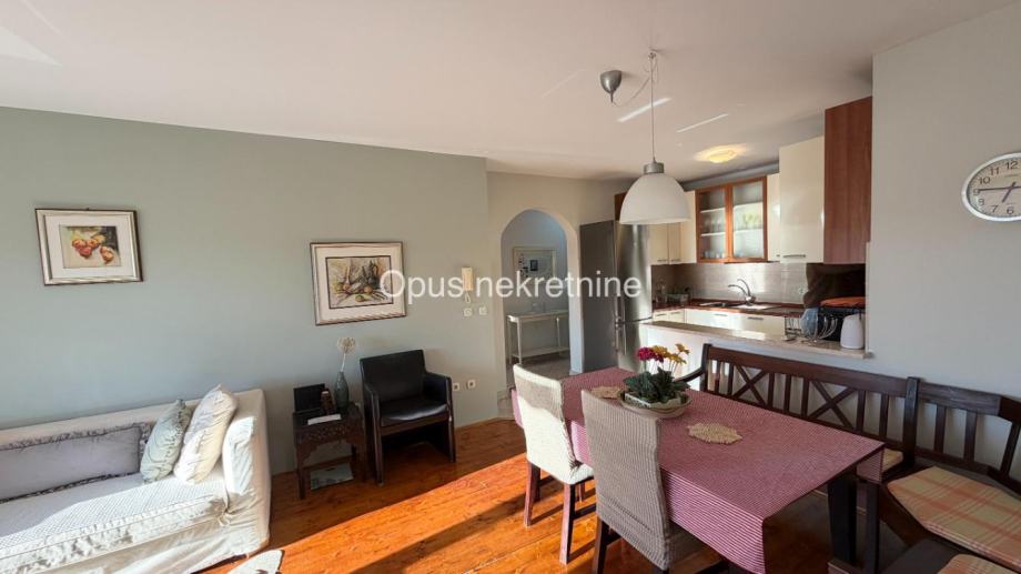 Stan raspolaže s garažom za dva automobila, što je iznimna prednost, posebice u priobalnom području. Prostor je promišljeno organiziran, svijetao i ugodan za svakodnevni život, a dodatnu vrijednost daje otvoren pogled na more koji stanu pruža osjećaj mira i kvalitete života.