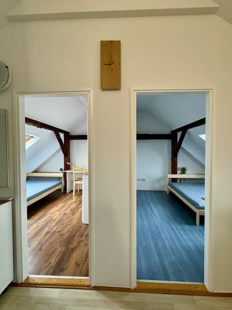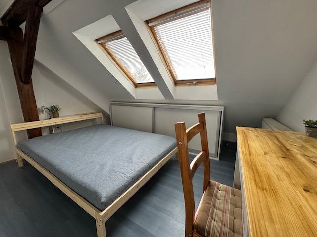 Svaka soba ima novi krevet s madracem 140x200, vlastite ormare, radni stol, a dnevno svjetlo osiguravaju 2 Velux krovna prozora.