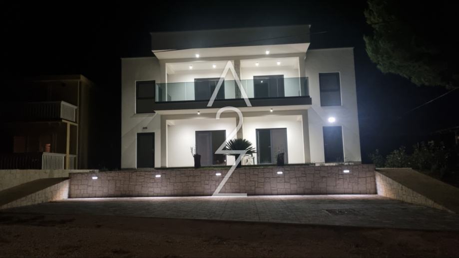Cjelokupnu atmosferu upotpunjuju klimatske jedinice koje čine svaki kutak kuće svježim i udobnim. Zasađeno bilje donosi mediteranski štih, a pogled iz stana je u prostrano plavetnilo.