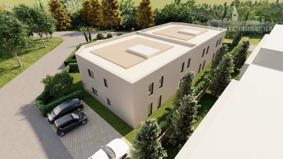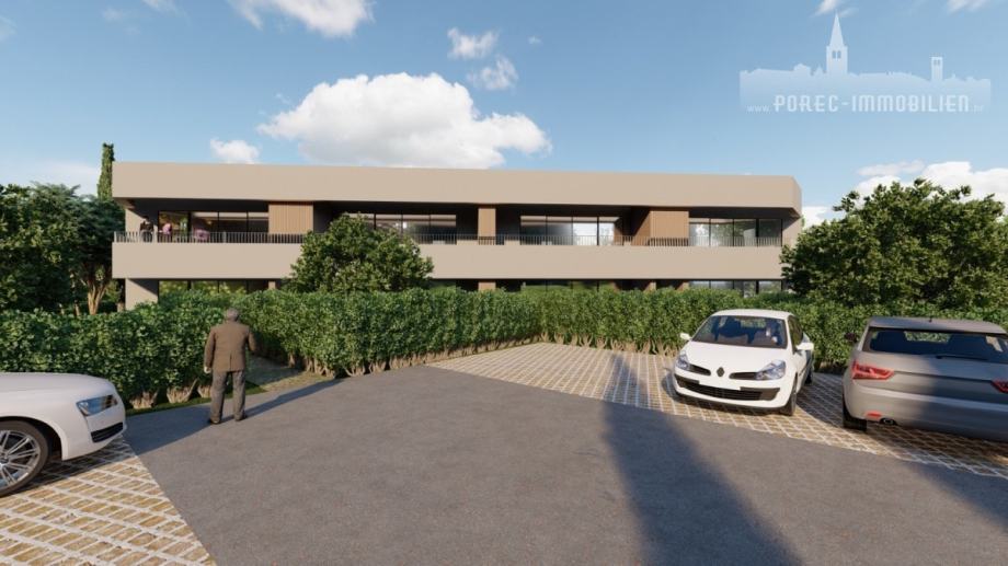 U okolici grada Poreča, na vrlo mirnoj lokaciji, prodaje se stan na prvome katu moderne zgrade, sa dvije spavaće sobe i velikom natkrivenom terasom.