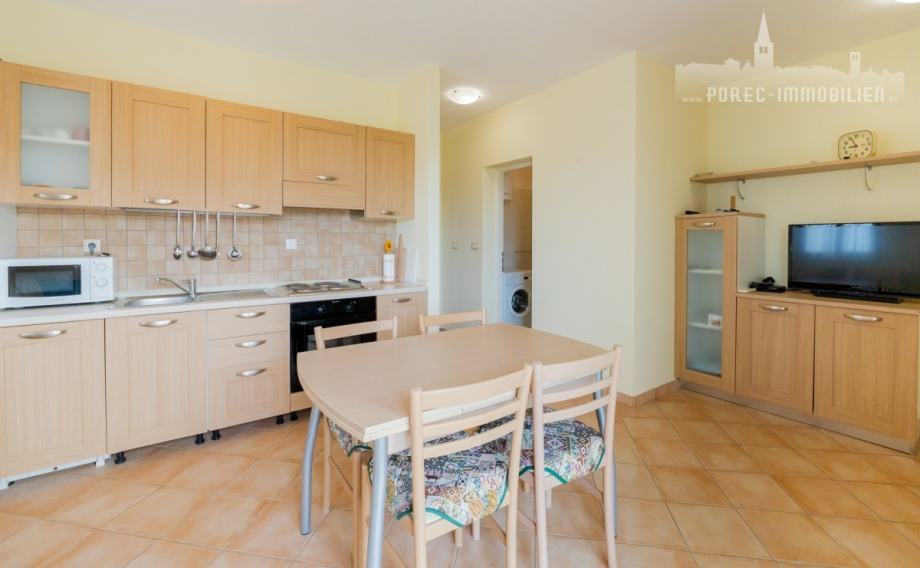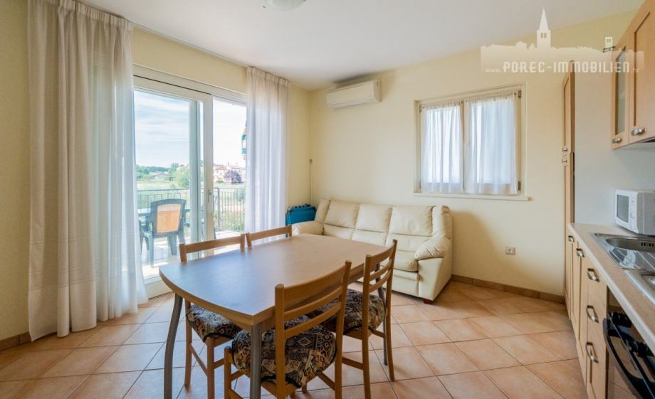 Ovaj stan je idealan za život, kao i za bavljenje turizmom, a nalazi se na 6 km udaljenosti od grada Poreča i 5 km od mora.