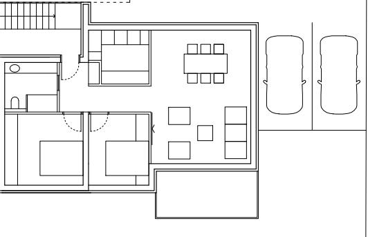 Tlocrt je jednostavan i prostor jako dobro iskorišten. Stambene površine 69,37 m2 te se po ulasku u stan nalazi ulazni prostor površine 7,93 m2 gdje je ostavljen prostor za veliki ugradbeni ormar te vodi do kupaonice površine 5,37 m2, te dvije spavaće sobe površine 12,01 m2 i 10,89 m2 i prostora kuhinje, dnevnog boravka i blagovaonice površine 33,76 m2. Kuhinja može biti odvojena vratima ukoliko ima potrebe za tim. Iz dnevnog boravka se izlazi na natkrivenu terasu površine 10 m2 ( izračun po koeficijentu 5 m2 ). Stanu pripadaju i dva nenatkrivena parkirna mjesta ( izračun po koeficijentu 5 m2 ).