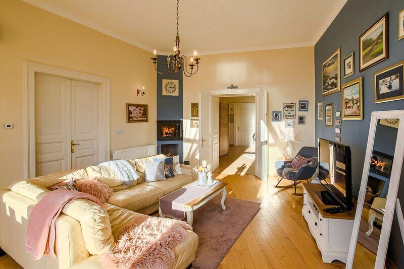 U dnevnom boravku nalazi se kamin na drva koji je takoder spojen na sistem centralnog grijanja te moze posluziti kao alternativni način grijanja.