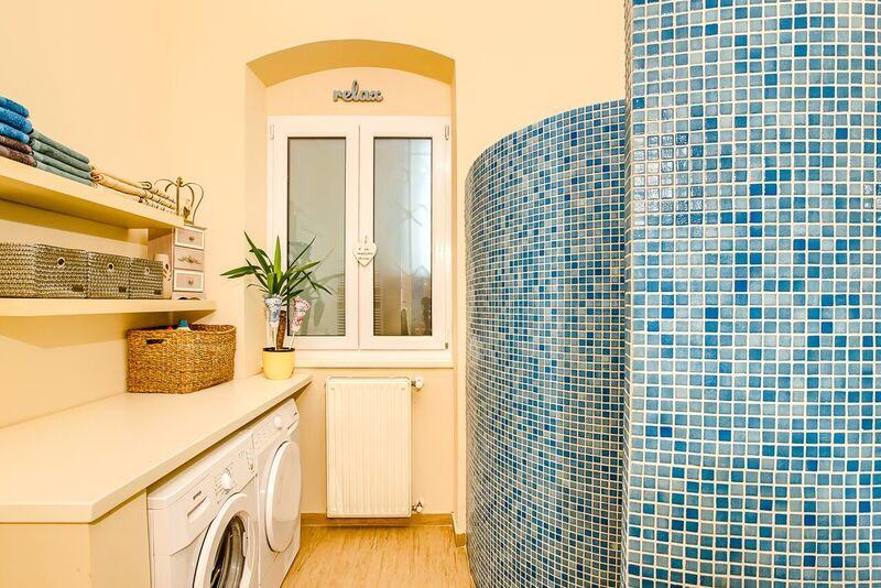 Posebnost ovog stana je konoba za druzenja sa prostranim otvorenim kaminom u kojem se mogu pripremati razno razne delicije.