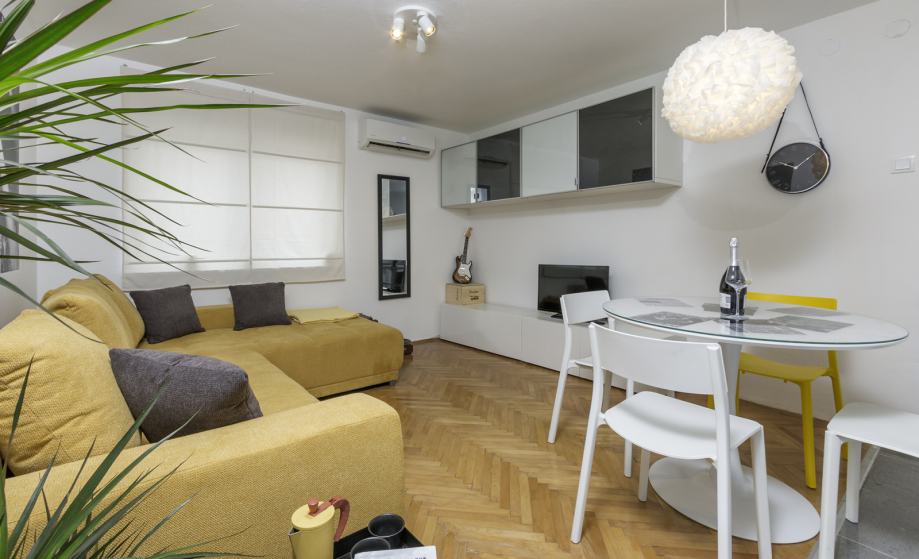Iznajmljujem potpuno namješten stan na Verudi, 1.kat. Dostupan od 1.02.2026. - 1.06. 2026. Nalazi se u mirnoj ulici. Kuhinja potpuno opremljena, ukljucujuci perilicu rublja i perilicu posuđa. Novi klima uređaj. Bez kucnih ljubimaca. Idealno za samce ili 1 par. Besplatan parking ispred zgrade. 500 eura + režije.