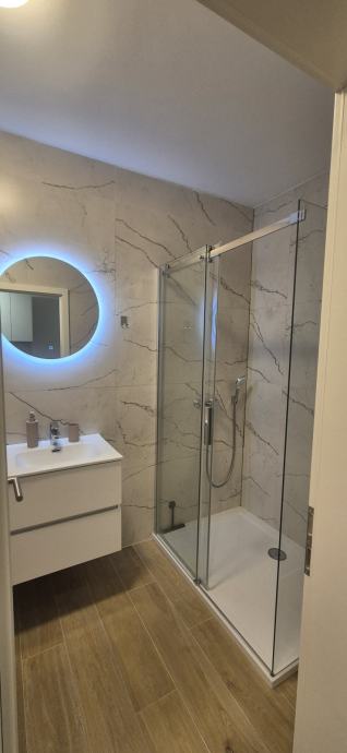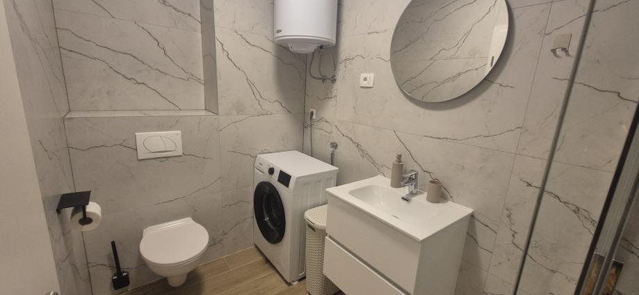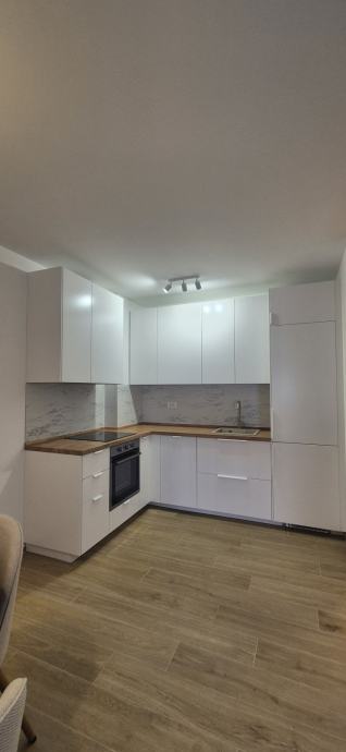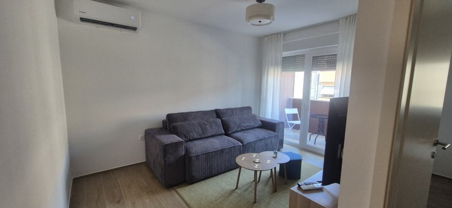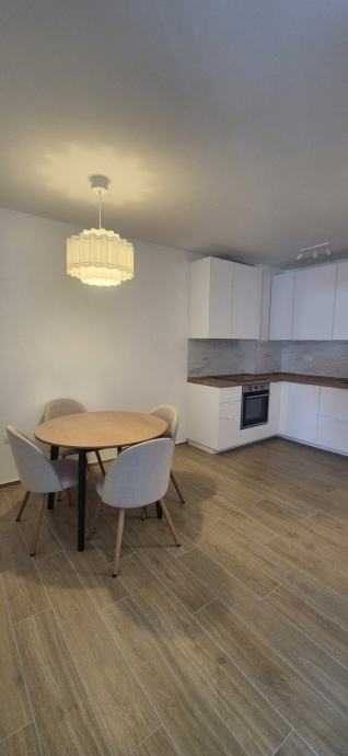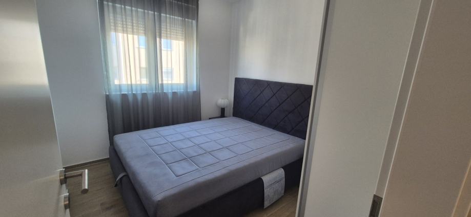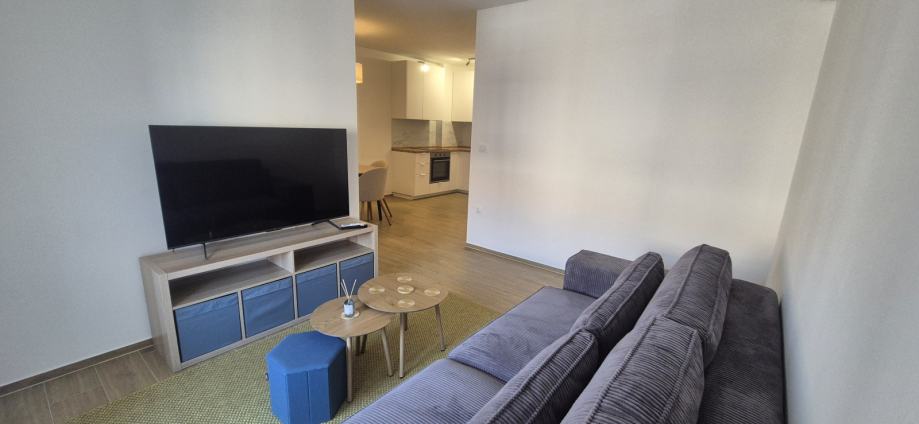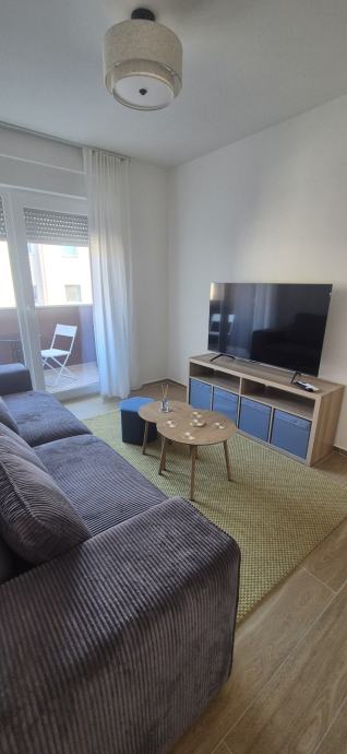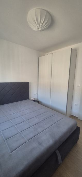 45 m², odvojena spavaća soba. Stan se nalazi na 3. katu zgrade s liftom. Novogradnja. Sav namještaj i uređaji novi. U dogovoru sa najmoprimcom moguća nabava dodatnih komada namještaja (ormar, vitrina, radni stol i stolica...)