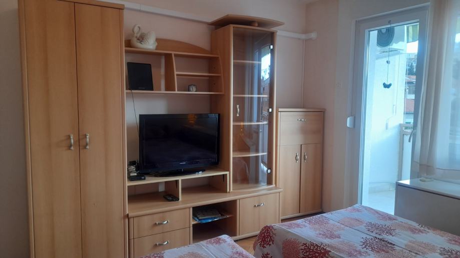 Smještaj se sastoji od opremljene kuhinje i blagovaonice u jednom prostoru, dvije sobe od kojih je svaka opremljena sa klima uređajem i po dva odvojena kreveta te kupaonice sa mašinom za pranje rublja. Stan ima balkon.