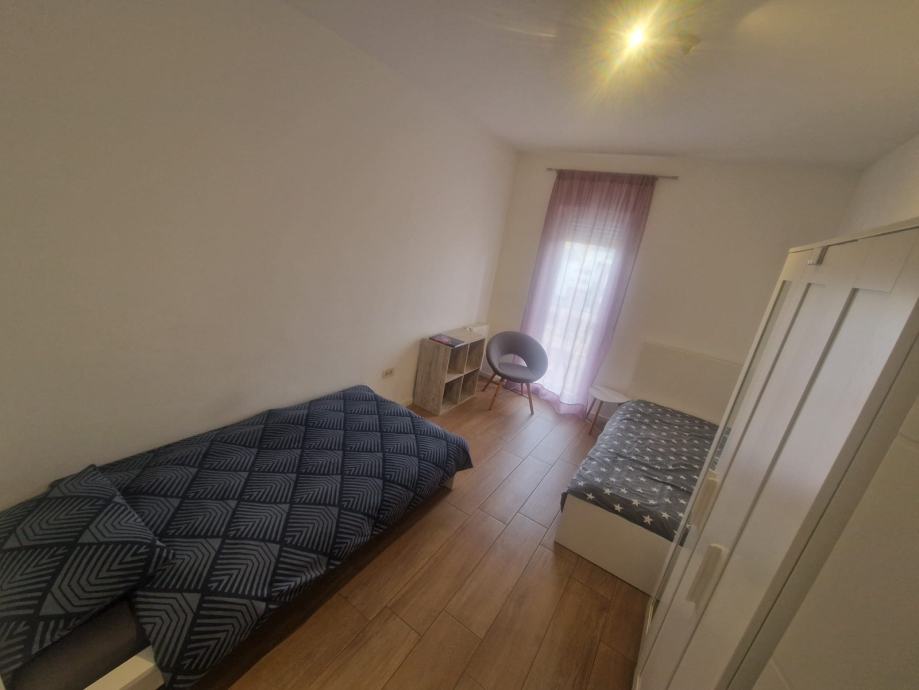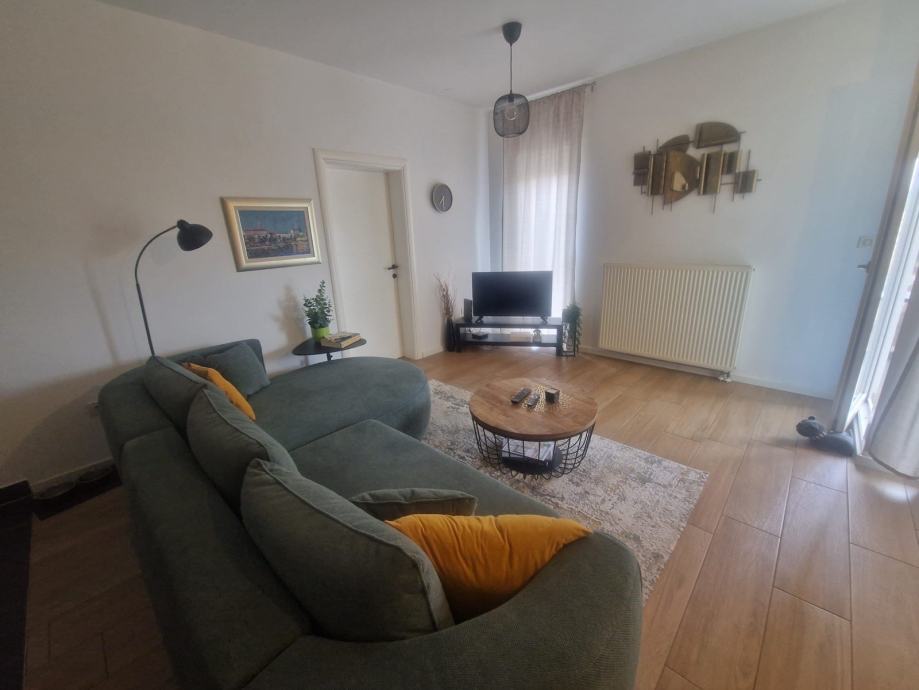 Stan je novogradnja te se nalazi u blizini bolnice i City Malla. Opremljen je velikom kuhinjom sa perilicom posuđa na koju se nadovezuju blagavaonica i dnevni boravak. Stan ima 3 spavaće sobe, u jednoj je bračni krevet i ta soba ima posebno kupatilo sa tuš kabinom. Druga soba ima dva odvojena kreveta, treća soba je najmanja i ima krevet za jednu osobu. U stanu je još jedno veće kupatilo sa kadom. Stan ima balkon te ostavu u kojoj se nalaze bojler za plinsko etažno grijanje i perilica rublja.