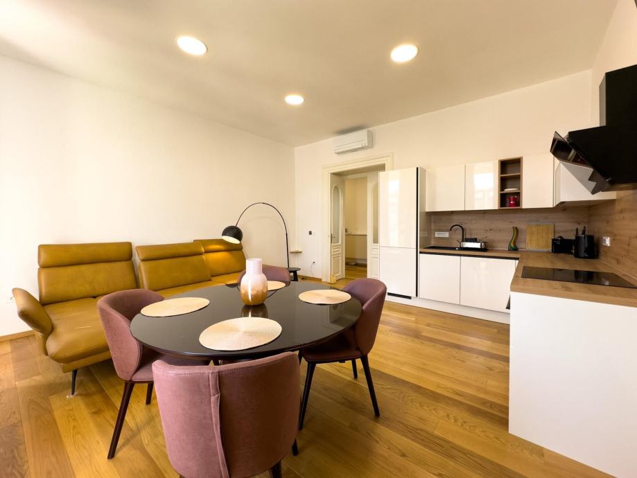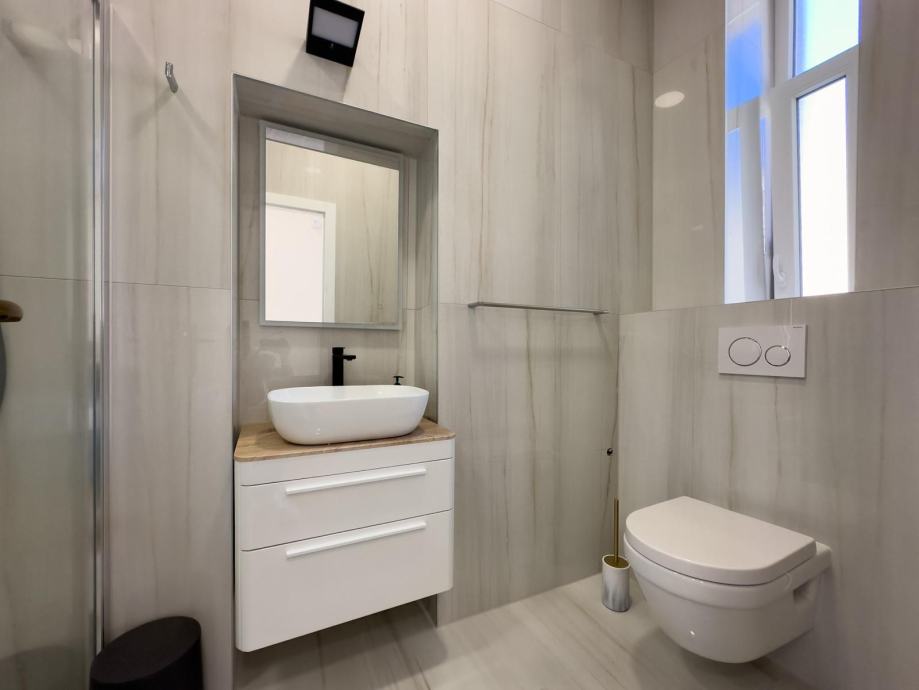 Predivan osunčani stan u centru Pule, na samoj gradskoj tržnici! Stan se sastoji od hodnika, 2 spavaće sobe, 2 kupaonice sa wc-om, vešeraj i dnevnog boravka sa kuhinjom i blagavaonom. Stan posjeduje veliku terasu, potpuno je renoviran, opremljen i spreman za useljenje.