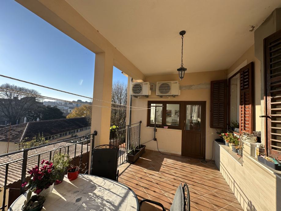 Prekrasan četverosobni stan u centru Pule, 5 min hoda od Pulske arene, 1 minuta hoda do Zlatnih vrata. Stan se nalazi na prvom katu zgrade koja se ukupno sastoji od 3 stana (prizemlje, 1 kat, 2 kat), kompletno je adaptiran i sastoji se od 2 spavaće sobe, blagovaonice ,dnevne sobe, kuhinje, hodnika, loggie (20 m2) i terase. Ukupna površina stana je 88m2. Parking je javni ispred zgrade (omogućen isključivo stanarima), no moguć je i dogovor oko najma ili kupovine garaže ili parkirnog mjesta u dvorištu zgrade. Kako se stan nalazi u jednosmjernoj slijepoj ulici, ista iako je u samom centru Pule, ograničena je prometom što ju čini idealnom kako za obitelji tako i za najam. Lokacija stana kao i sam stan su doista izvanredni, blizina svih kulturnih i pedagoških sadržaja, samo par minuta hoda do restorana i kafića, a opet mirnija i manje prometna ulica u kojoj automobil ili drugo prijevozno sredstvo u obavljanju većine dnevnih obveza nisu potrebni.