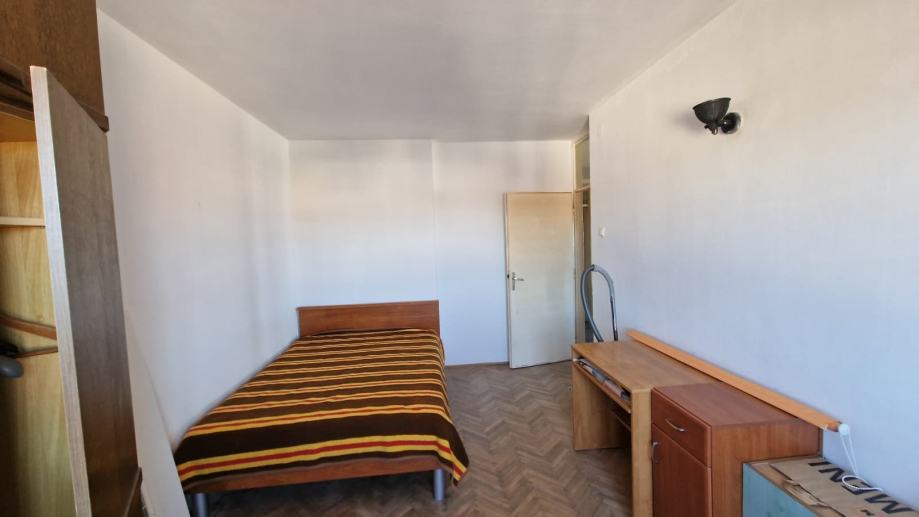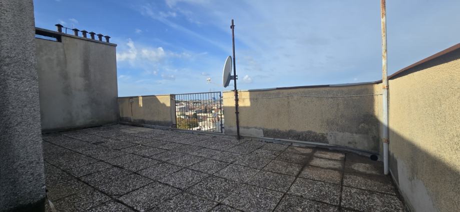 Na prodaju se nudi prostran i suncan trosobni stan (1 dnevni boravak, 2 spavaće sobe) površine od 74 M2 plus šupa, smješten na prezadnjem 5. katu stambene zgrade u mirnom i traženom naselju Kaštanjer, u neposrednoj blizini gradske bolnice i svega nekoliko minuta hoda od strogog centra grada.500m od zelene tržnice.Prekrasan panoramski pogled na grad i luku iz svih prostorija .Krovna terasa na vrhu zgrade na koristenje predmetnog stana (dogovor sa svim suvlasnicima)