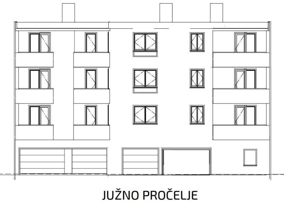 Nova stambena jedinica u izgradnji od 4 etaža sa ukupno 9 stanova (garaže i podrumi; prizemlje-natkrivene garaže i 2 konobe + 3 kata), imati će i vanjska parkirna mjesta.