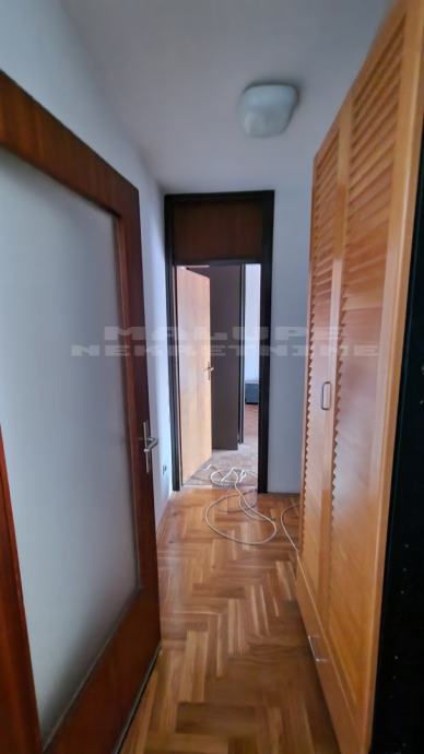 Stan se nalazi na 5.katu i sastoji se od hodnika, dnevnog boravka, kuhinje, lođe, spavaće sobe i kupaonice + ostava u podrumu ukupne neto površine 57.5 m2