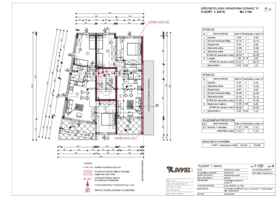 Stan je smješten u zgradi broj 9, na 1.katu te je stambene površine 59,7 m2. Očekivani završetak radova je kraj lipnja 2026 godine.