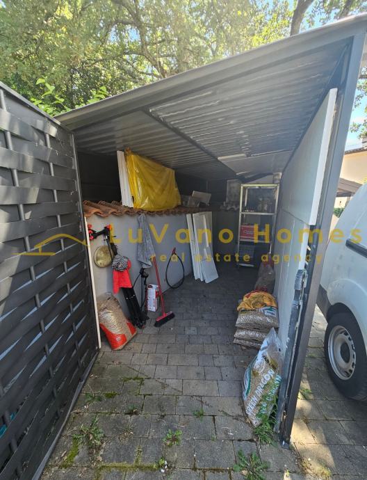 Stanu pripadaju i dva parkirna mjesta, od kojih je jedno natkriveno i uređeno kao vanjska ostava.