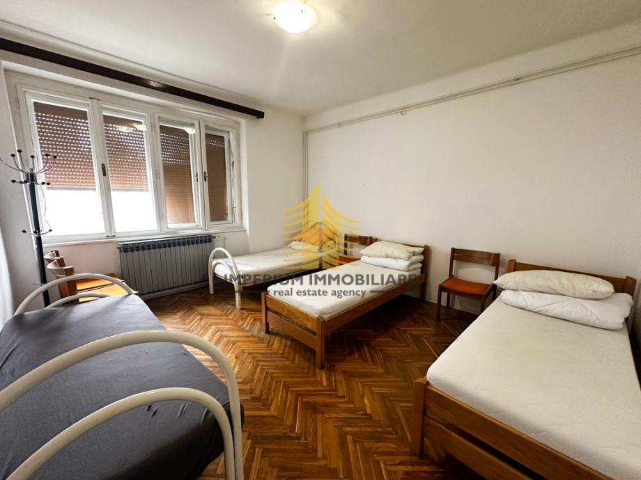 U ponudi je stan za najam površine 65 m2, smješten na visokom prizemlju u mirnom dijelu Trnja. Ovaj stan nudi tri odvojena spavaća prostora, što ga čini pogodnim izborom za 6 do 8 radnika.