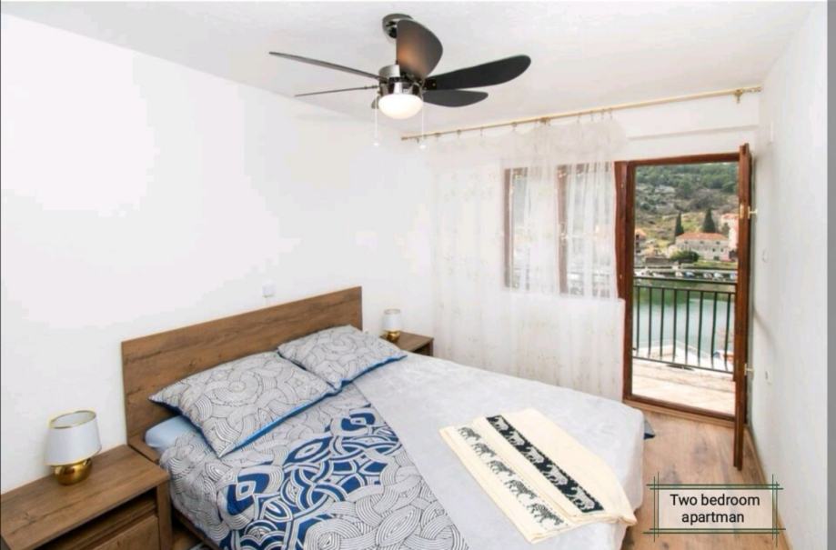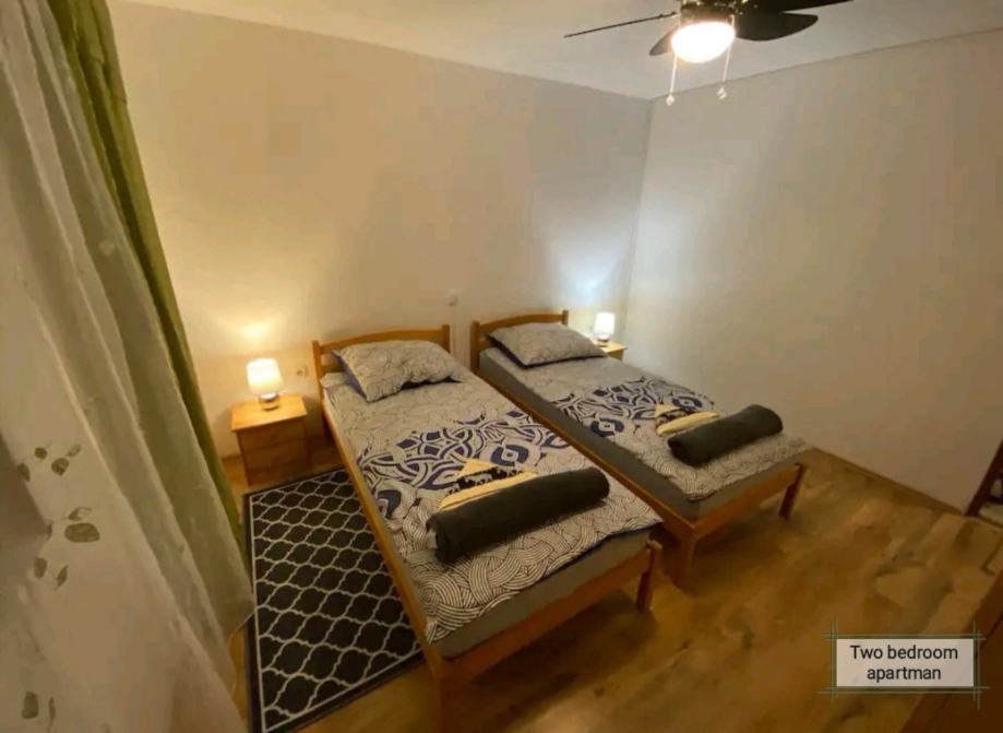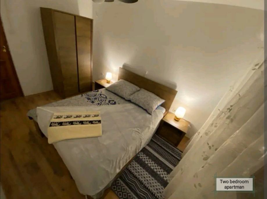 Stan se sastoji od 2 spavaće sobe, dnevnog boravka sa kaučom, kuhinje, kupaonice i velikog balkona