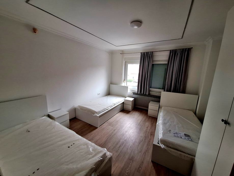 Stan je novo uređen i prilagođen za smještaj 6 radnika te sastoji se od kuhinje, kupaone i dvije sobe, svaka s po 3 kreveta.