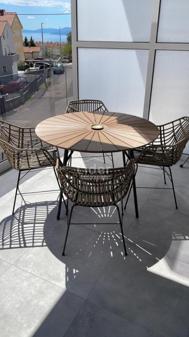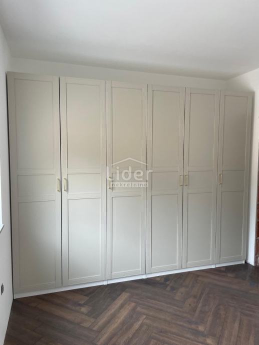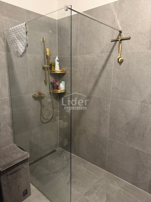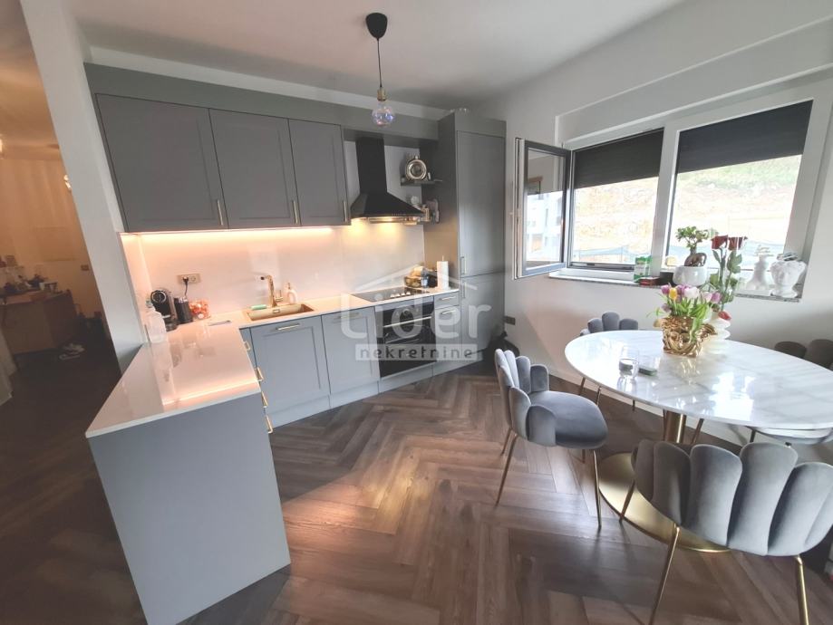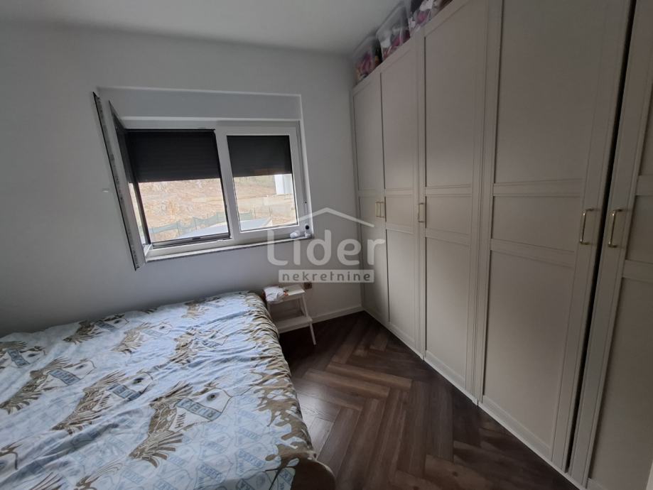 Rešetari, stan u novogradnji iz 2023. godine. Sastoji se od open space dnevnog boravka i kuhinje s radnom površinom i oblogom zida od kvarca (Dan kuchen), sobe, kupaone, hodnika, velike terase od 15+m2 s djelomičnim pogledom na more, spremište u prizemlju zgrade i vanjskog parkirnog mjesta.