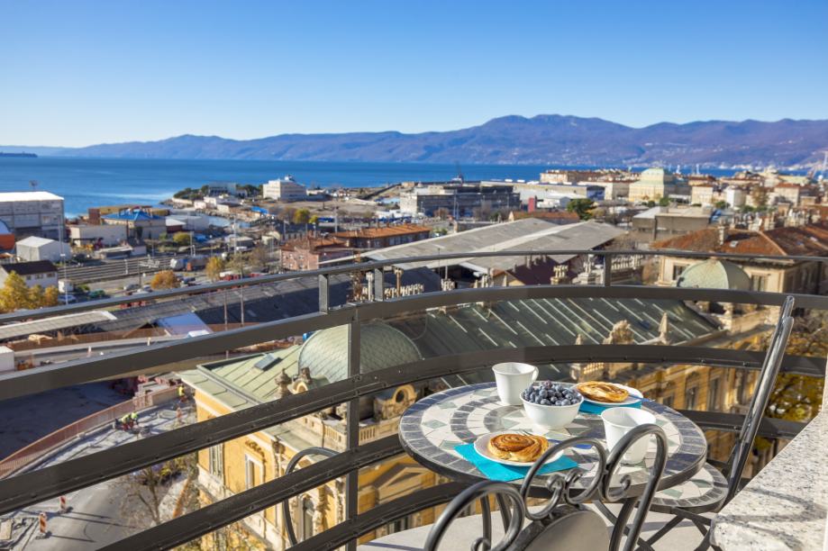 - 2 komotna balkona(južni i sjeverni). Idealni za uživanje u prostranim vanjskim prostorijama. Jedan sa predivnim pogledom na Kvarner, a drugi natkriveni intimniji sa pogledom na sjevernu vizuru Susaka/Bulevarda