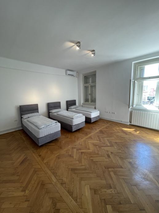 Prostrane spavaće sobe, veliki dnevni boravak, visoki stropovi, klasični parket i velika prozorska stakla daju prostoru eleganciju, toplinu i puno prirodnog svjetla.