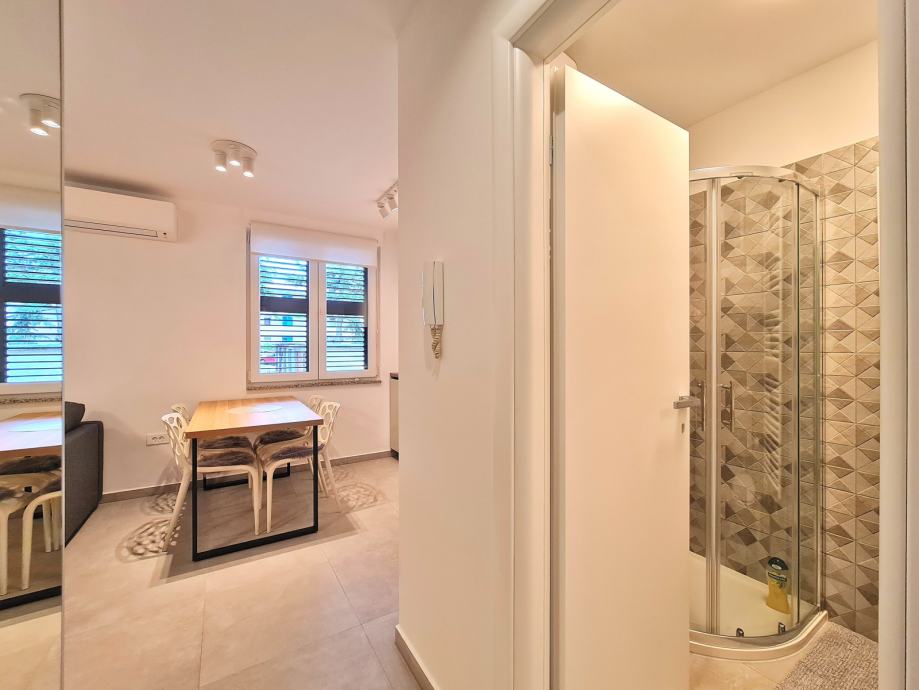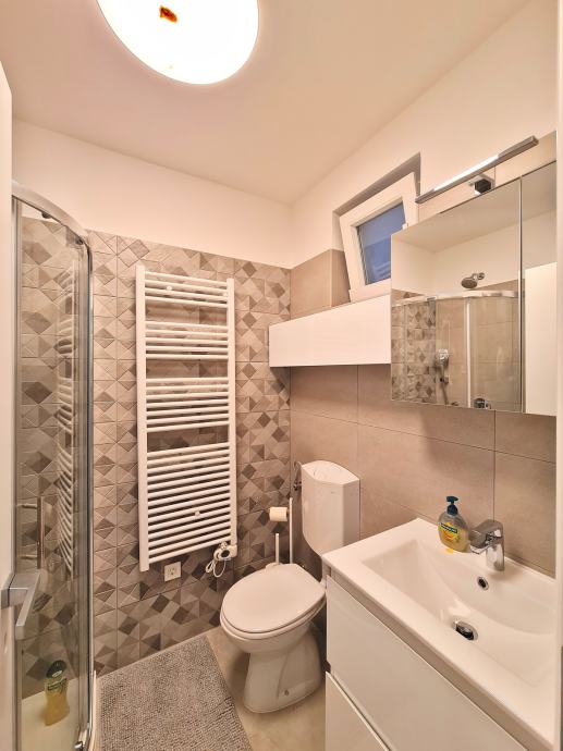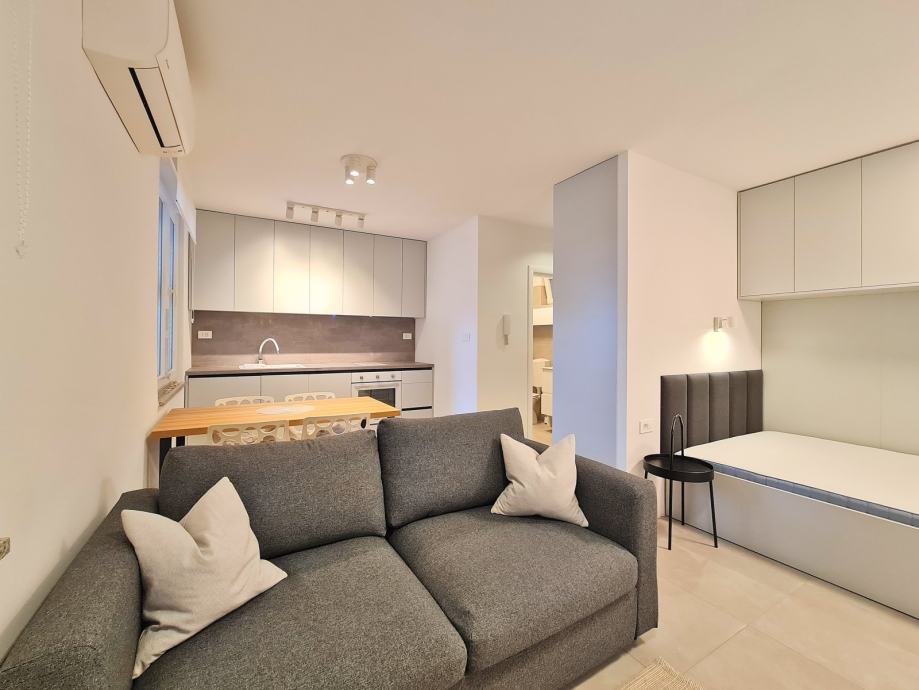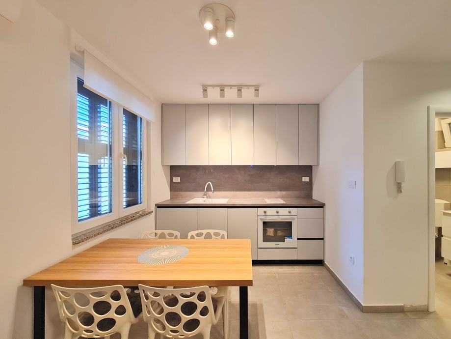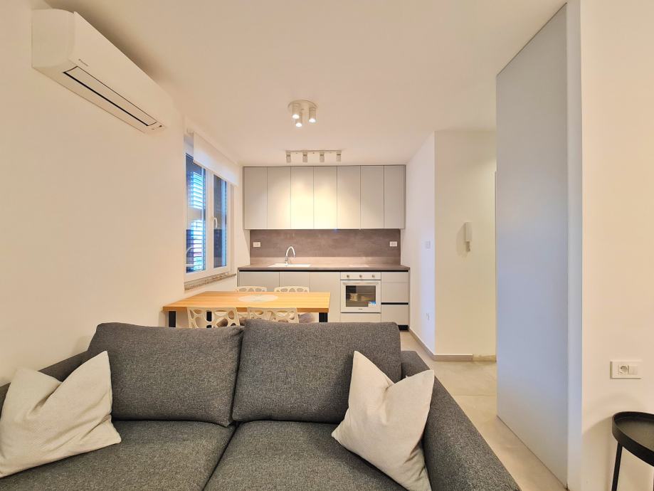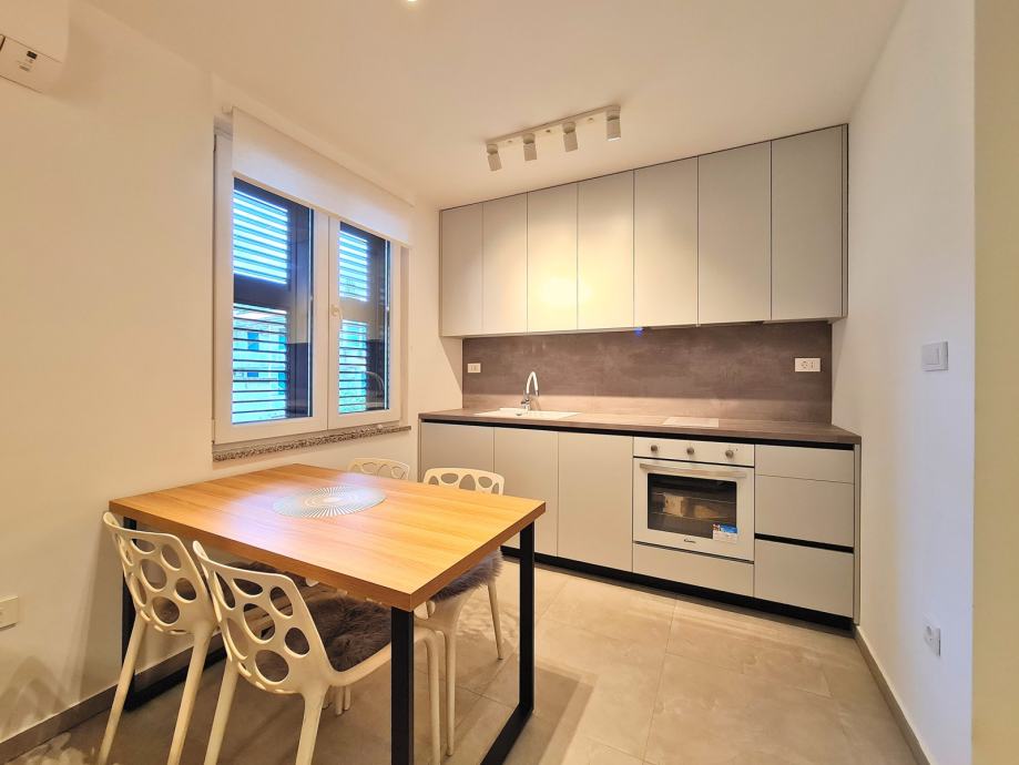Stan je potpuno renoviran i novi stanari ulaze u kompletno namješten i opremljen svim potrebnim kućnim uređajima. (električni štednjak (indukcija), pećnica, hladnjak, perilica suđa, perilica / sušilica rublja, Internet, TV .
