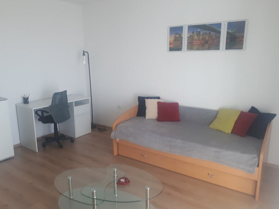 Novouređen prekrasan stan koji se sastoji od hodnika, jedne spavaće sobe, kuhinje, dnevnog boravka, kupaone i smočnice. Panoramski pogled s balkona.