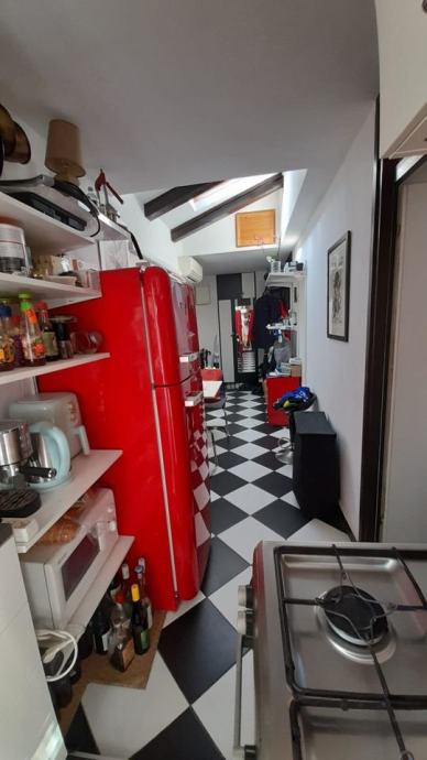 Kompletno namješten stan se nalazi na četvrtom katu stambene zgrade , potkrovlje , a sastoji se od: dvije sobe , dnevni boravak , blagovaonica i kuhinja , kupaona.