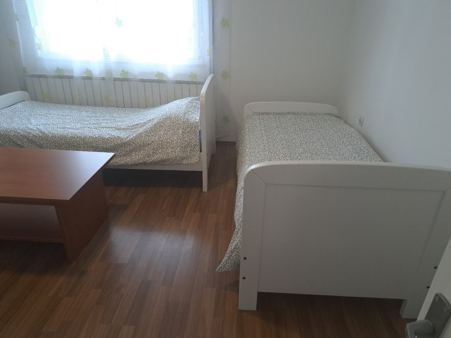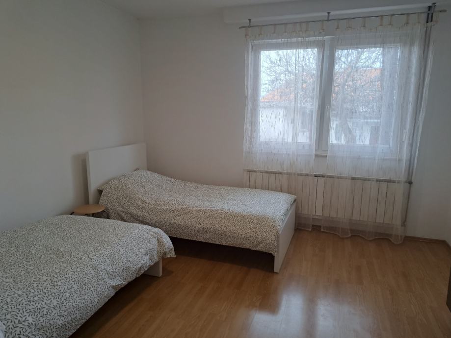 Nudimo smještaj za radnike u Rijeci-Zapadni dio (ispod Hostovog brega- izlaz za Rujevicu) Gornji Zamet, dobra prometna povezanost. U potpuno namještenoj etaži obiteljske kuće, sve su prostorije namještene (posuđe, posteljina, ormari, perilica rublja).Stan sadrži kuhinju sa blagovaonicom, dva wc-a s kupaonicom, tri sobe sa 6 kreveta i jednim pomoćnim ležajem. Svaka soba ima Tv, neograničeni flat internet, grijanje centralno na pelete i klima uređaj. Poseban ulaz u stan i osiguran parking. Cijena po osobi 260 eur i u cijenu su uključeni režijski troškovi.