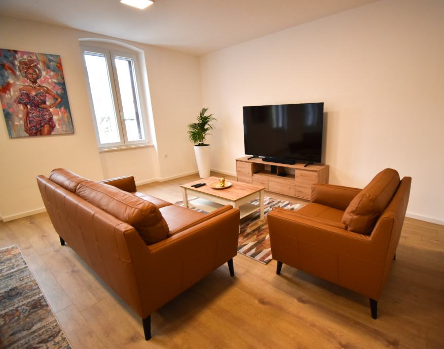 Moderno uredjen stan sa svim namjestajem i uredjenom ostavom,uredjen prije godinu dana.Kuhinja 6m sa svim uredjajima, tv 65 inča, kozni trosjed i fotelja,protuplovalna vrata,balkon zatvoren u alu.bravariju itd.itd.Sve informacije na Mob: 091 251 83 18