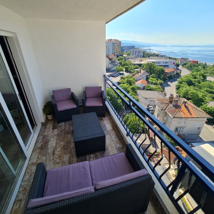 Idealno za POSLOVNE ljude. VRHUNSKA LOKACIJA, ali mirno. Otvoren pogled na cijeli Kvarner. Stan ima sve: lift, modernu opremu, parking, 2 spavaće sobe + veliki dnevni boravak, 2 odvojena wc-a, kupaonica, lođa sa pogledom i puno privatnosti, ostava, klima, centralno grijanje, 2 nova TV-a, FLAT optički internet. KING SIZE box-spring krevet 200x180, druga soba sa 2 odvojena kreveta + 2 radna stola po potrebi. ZTC Mall Rijeka 0,9 km, centar grada i bazeni Kantrida 3 km, Opatija 10 km. Obilje sunca zimi. Moguć je ugovor sa uključenim režijama u ugovoru ZA TVRTKE. Kaufland super-market pješice 150 metara, svi sadržaji nalaze se u neposrednoj blizini. Dostupno od polovice ili krajem siječnja 2026. Iznajmljuje vlasnik bez provizije obvezan je polog. Dobra cijena =1.000 eura + režije, za dugoročni najam.