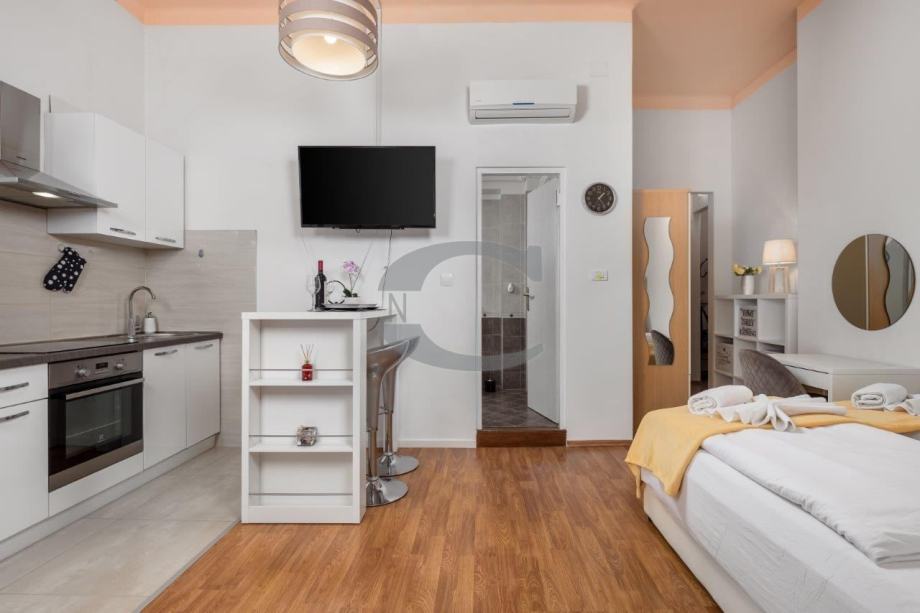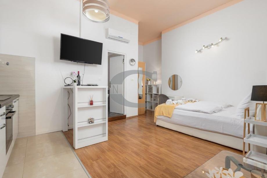 od 34 m2. Sastoji se od jedne spavaće sobe, kuhinjice, kupaonice