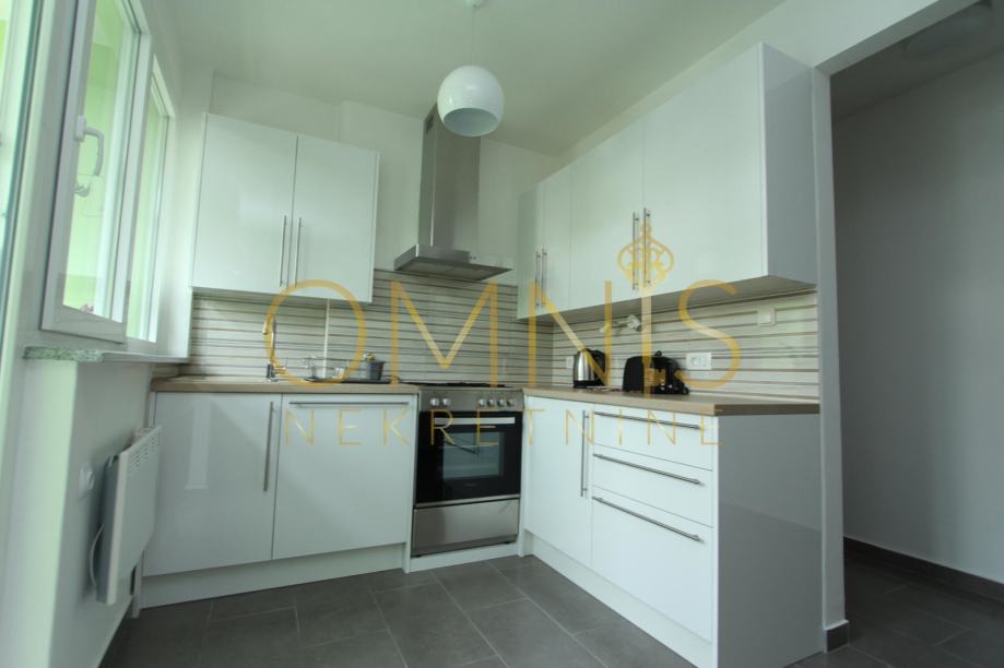 Iznajmljuje se moderno uređen i potpuno opremljen stan površine 55 m2, smješten na 3. katu stambene zgrade na atraktivnoj lokaciji – Krimeja. Stan je južno orijentiran, izuzetno svijetao i ima prekrasan pogled na more.