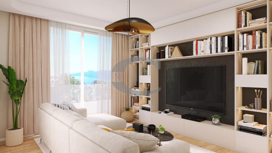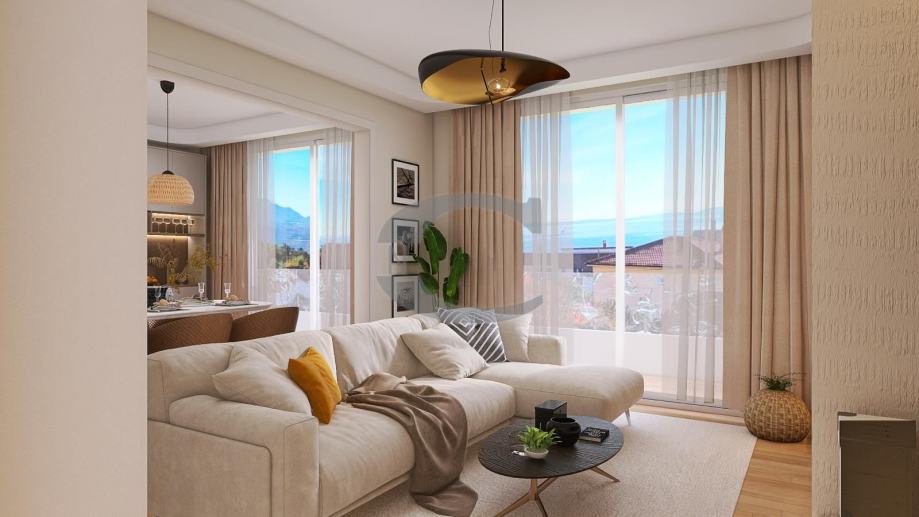 Osvijetljen i sunčan stan sa pogledom na more i osigurana 2 parkirna mjesta.