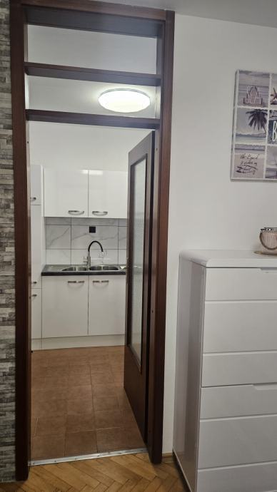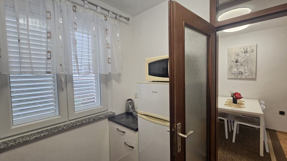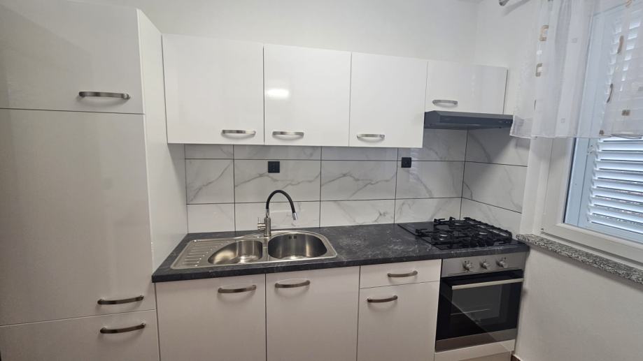 Iznajmljuje se svijetao i ugodan stan za život, s pogledom na more. 1S+DB, nova kuhinja, male režije, dugoročni najam. Nova fasada i PVC stolarija. Stan je namijenjen za max. 2 osobe, bez kućnih ljubimaca. Polog u visini 1 najamnine. Zvati poslije 14 sati.