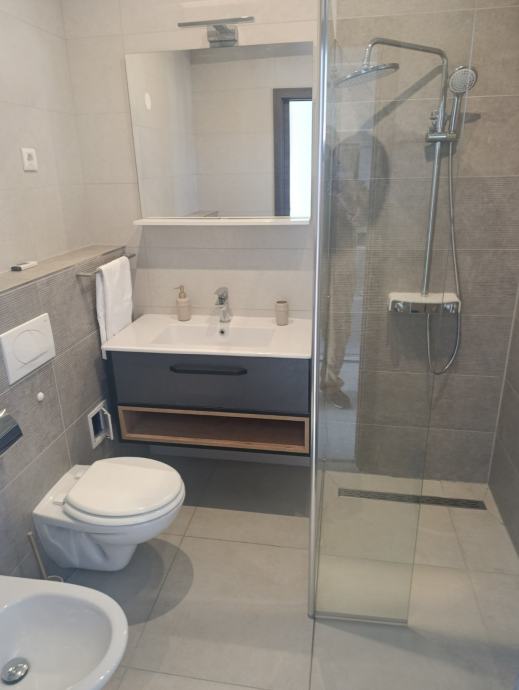 Dugoročno iznajmljujem 3s stan + db, prvi kat, lijepo uređen i osunčan, južne orijentacije sa pogledom na more, namješten, podno etažno + klima, 2 kup, 2 balkona + terasa, parkirno mjesto.