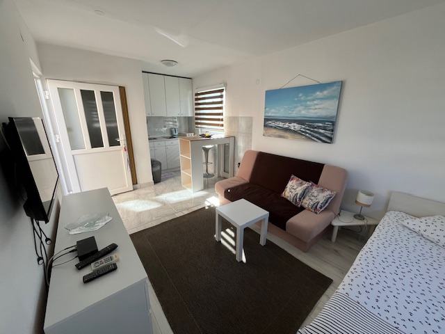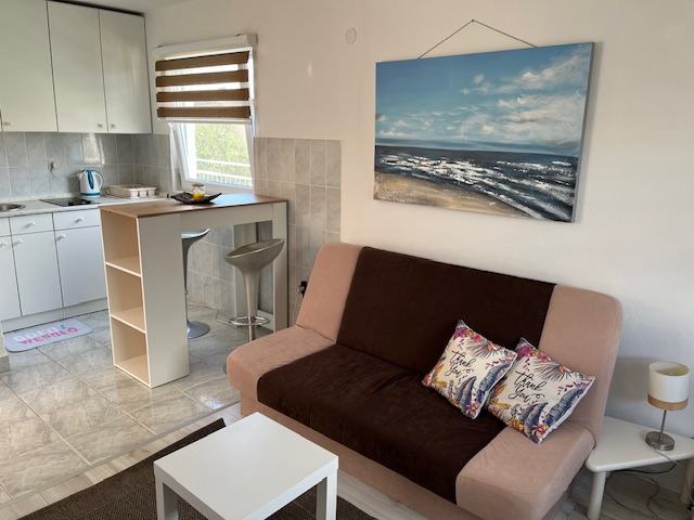 Studio apartman 25 m2, iznajmljujem od 15.09.2025. do 15.06.2026 za radnike ili na cijelu godinu. Može se staviti bračni krevet umjesto za jednu osobu. Režije su uključene u cijenu.